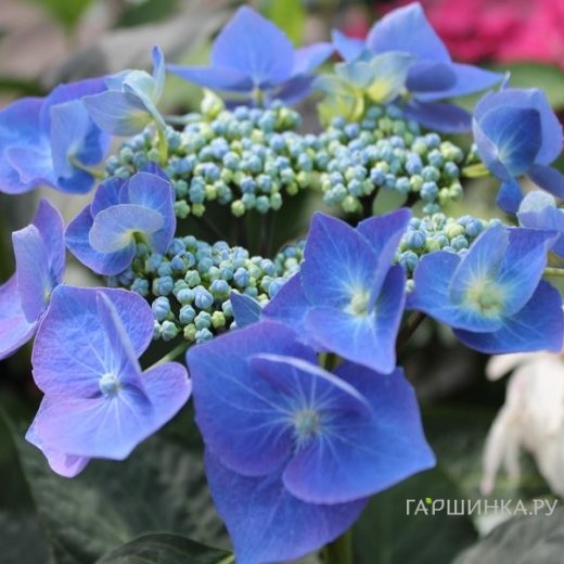 Гортензия Теллер Блю крупнолистная (макрофила) - В зависимости от кислотности почв можно менять окраску цветков. Раскидистый кустарник высотой до 1,5 м. Соцветия крупные, 30-35 см в длину. Цветет начиная с июня и до октября. Зацветает уже в год посадки. Вынослива и неприхотлива. Растения рекомендуется мульчировать на зиму.