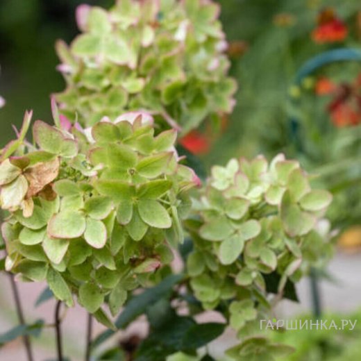 Гортензия Металика метельчатая - Соцветия очень крупные (до 50 см), плотные, состоят из крупных стерильных цветков (до 5 см), с небольшим вкраплением фертильных. В начале цветения лепестки лаймово-белые с розовой каймой, в конце сезона соцветия окрашиваются в малиново- бордовые цвета с металлическим оттенком. Цветение с июля до октября. Стебли прочные, красновато-коричневого цвета. Куст компактный, густой, хорошо держит форму. Максимальная высота взрослого растения до 1,5 м, ширина до 1 м. Отличная зимостойкость, сорт хорошо зарекомендовал себя при выращивании в сибирских регионах.