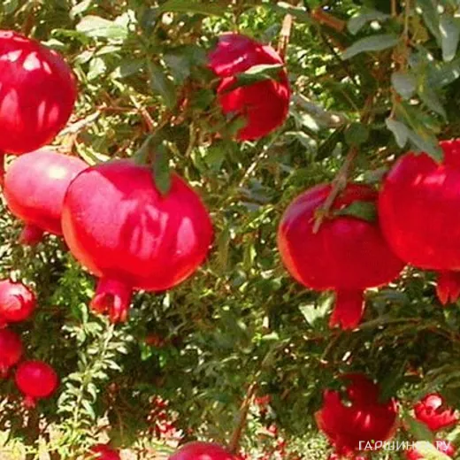 Гранат обыкновенный - листопадное дерево/кустарник 5-10,0 м. Имеет мощную корневую систему, ствол коричнево-бурый, ветви супротивные, колючие, желто-коричневые. Лист широколанцетный, округлый. Цветки кроваво-красные, крупные, в пучках, цветоножка короткая. Плод шаровидный, ягодообразный, диаметр 15 см, кожура кожистая, красная, красно-желтая. Внутри плода множество семян крупной величины, наружный слой семени сочный, с кисловатым пурпурным соком.