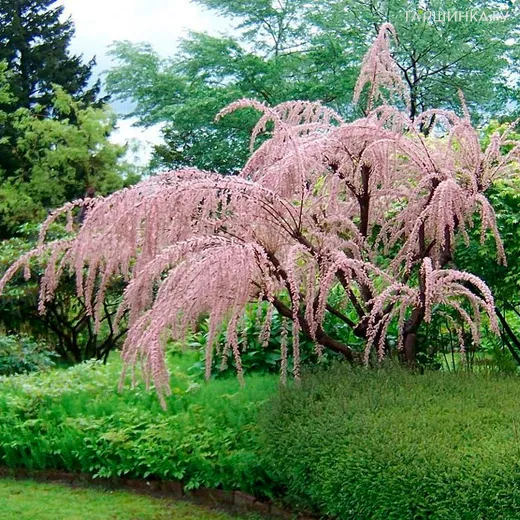 Гребенщик (тамарикс) мелкоцветковый - нарядный, раскидистый кустарник или невысокое дерево. Его тонкие ветви покрывает множество крохотных цветков, что придает кроне легкости и воздушности. Тамарикс станет настоящим украшением сада