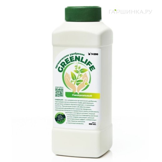 Green Life для Универсальные - подкормки проводят путем полива или опрыскивания растения раствором Green Life всеми видами и системами поливов (традиционный, капельный, орошение и др.) при помощи леек, ранцевых, аккумуляторных, бензиновых опрыскивателей и другого садового инвентаря. Натуральное органическое удобрение, произведенное из низинного торфа, действующим веществом которого являются фульво- и гуминовые кислоты. ЭКО продукт, который: Сокращает срок вызревания на 10-12 дней. Увеличивает урожай на 20-40%. Повышает его качества. Помогает приобрести устойчивость к засухе и заморозкам. Улучшает структуру почвы.