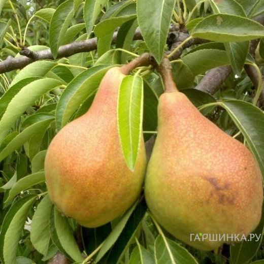 Дерево среднерослое, по форме кроны близко к высокосферической, однако, с более раскидистыми ветвями. Главные ветви со светлой коричневато-серой корой, приподняты вверх, но со временем раздаются в стороны. Плодоношение сосредоточено на кольчатках и многолетних плодухах, начиная с 2-3-летнего возраста. Побеги довольно тонкие, прямые, округлые в сечении, светло-коричневые. Листья темно-зеленые, блестящие, эллиптические, слабосложенные, несколько свисающие, с гладким или слегка зазубренным краем, на длинных черешках, с мелкими шиловидными прилистниками. Цветение позднее, цветки мелкие, белые. Плоды средней величины, одномерные, массой 100г. Кожица сухая, гладкая, тонкая. Плоды по внешнему виду в значительной степени похожи на среднерусский сорт Тонковетку, грушевидные, желтые, с ярким розовым румянцем с солнечной стороны, на длинной, обычно изогнутой плодоножке. Мякоть желтовато-белая, относительно плотная, без каменистых клеток, мелкозернистая, сочная, кисло-сладкого вкуса, позднелетнего или раннеосеннего созревания. Плоды потребляются в свежем виде, пригодны для переработки. Начало плодоношения – на пятый год после окулировки. Урожайность хорошая, ежегодная. К парше сорт устойчив. Достоинства сорта: зимостойкость, урожайность, хороший вкус и внешний вид.