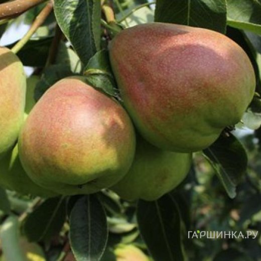 Плоды средние (массой 130 г), одномерные, грушевидной формы, с гладкой поверхностью. Основная окраска плодов в момент потребительской зрелости зеленовато-желтая, покровная – карминовый размытый румянец на солнечной стороне плода. Хорошо заметны многочисленные серые подкожные точки. Плодоножка средняя, изогнутая. Сердечко небольшое, луковичное.