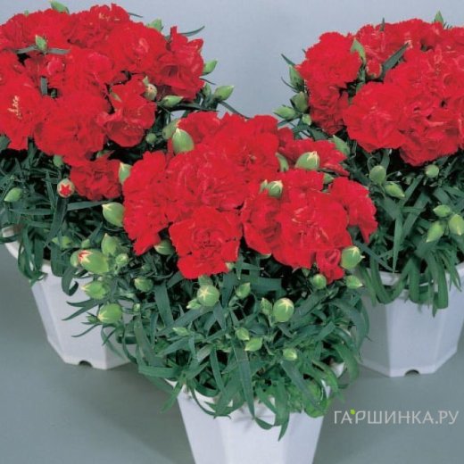 Гвоздика Лиллипот Скарлет садовая - махровая гвоздика высотой от 15 до 25 см. Непрерывно цветет всё лето насыщенными красными цветками, диаметром 5 см.