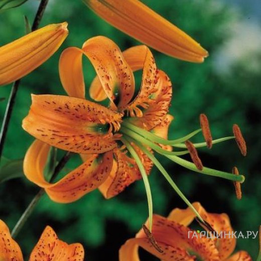 Лилия Генри видовая Вид назван в честь ирландского сборщика растений Августина Генри (1857—1930), первым из европейцев нашедшим это растение. В природе произрастает в кустарниковых зарослях на горных склонах, на высотах от 700 до 1000 метров над уровнем моря. Районы произрастания вида характеризуются дождливым летом и сухой осенью. Цветки ароматные, поникающие, диаметром около 6 - 7 см. Околоцветник чалмовидный, оранжево-жёлтый, от основания цветка до середины имеются многочисленные разветвленные сосочки. Цветки собраны в кистевидные соцветия по 15—20 цветков. Нектарники открытые, ярко-зелёного цвета. Пыльца тёмно-коричневая. Цветёт в августе. Высота растения 100—140 см, стебель изогнутый, с многочисленными стеблевыми корнями. Листья кожистые, тёмно-зелёные, продолговато-ланцетные 10—15 см длиной. Отличается особой выносливостью и зимостойкостью (до -31.6 °C). При посадке рекомендуется внесение извести.