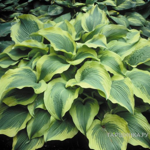 Хоста Атлантис (L) - Ярко-зеленая, с очень широкой каймой от желтого до кремового цвета, с небольшими полосами, заходящими ближе к основанию листа; матовая сверху и с сизым налетом снизу, жилки глубокие бороздчатые, край широко-волнистый. Лист неровный, в виде вытянутого овала, с отогнутым вниз кончиком. Цветы лавандовые. Изящный, ниспадающий куст разрастается до 175 см в ширину и до 75 см в высоту. Листовая пластинка размером 33 х 20 см. Период цветения июль-август. Зона зимостойкости: 3 (-40 ° С)