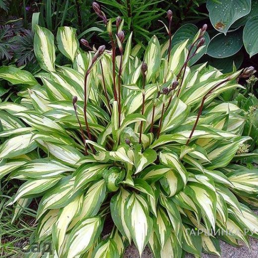 Хоста Черри Берри (SM) - Широкий прямостоячий куст. Листовая пластинка тонкая, атласная, появляется из земли желтой, а потом становится цвета слоновой кости, с широкой неравномерной темно-оливковой каймой с небольшими шартрезными язычками, доходящими до главной (средней) жилки листа, гладкая, край изредка слегка волнистый. Лист изогнутый, эллиптический, с острым, иногда загнутым вниз или суживающимся кончиком. Место посадки: на утреннем солнце или при очень хорошем освещении. В жарком климате ширина листьев значительно увеличивается, куртина нарастает быстрее. Листовая пластинка размером 15 x 6 см. Куст высотой до 25 см. Ширина куста до 35 см. Период цветения июль-август. Зона зимостойкости: 3 (-40 ° С)