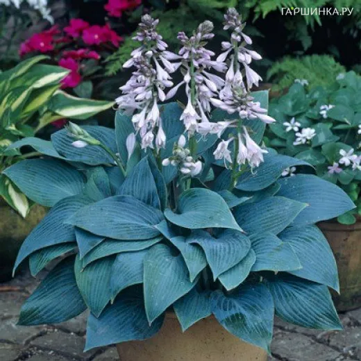 Хоста Халцион (M) - Одна из самых голубых хост. Листья очень плотные, копьевидные. Цветки лавандовые крупные, воронковидные. Лист среднего размера - 16 х 10 см. Куст высотой до 50 см. Период цветения июль- август. Зона зимостойкости: 3 (-40 ° С)