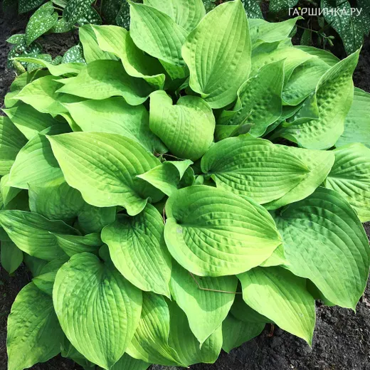 Хоста Хонибелз (L) - Листья овальные. Черешок светло-оливково-зеленый. Цветы растут на прямом, облиственном, зеленом цветоносе, цветки отличаются сиреневой окраской. Куст высотой до 80 см. Период цветения август-сентябрь. Зона зимостойкости: 3 (-40 ° С)