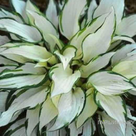Хоста Вайт Крисмос (ML) - Листья копьевидной формы с волнистым и не ровным краем, в середине цвет - сливочно-белый, к концу лета слегка зеленеет, кайма - ярко-зеленая. Цветы: белые Листья длинной 22 см и шириной около 7 см. Цветение начинается только в середине лета. Растение формирует кустарники средние по объему до 30 см в высоту и до 90 см в диаметре в ширину. Зона зимостойкости: 3 (-40 ° С)