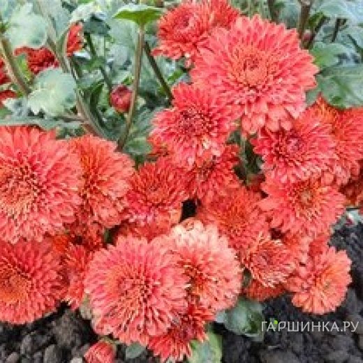 Хризантема Майола - относится к группе садовых хризантем. Цветёт в августе-сентябре. Цветки красные, махровые, диаметром 6 см. Высота 50-60 см. Прочные, хорошо облиственные цветоносы венчаются довольно крупными огненно-красного цвета соцветиями.