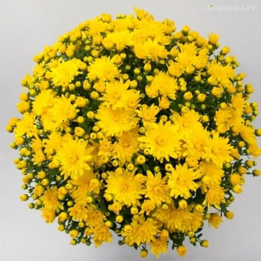 Хризантема мультифлора Бранкроун - Цветки желтые. Зацветает в августе. Цветки диаметром 5 см. Куст компактный, шаровидный, среднерослый, ближе к низкорослому, высотой до 50 см.
