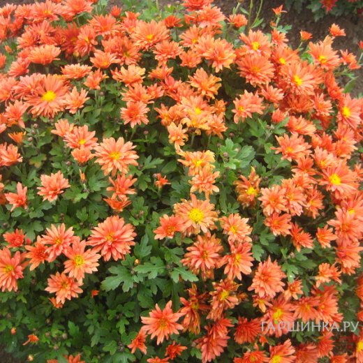 Хризантема мультифлора Бранфортун Оранж - Высота куста 35-40 см, диаметр цветка 4 см. Начало цветения: вторая половина августа.
