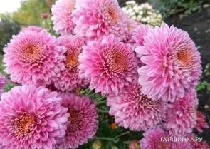Хризантема Пэйтон Дэйл Пинк - Относится к группе садовых хризантем. Цветёт в августе-сентябре. Цветки розовые, махровые, диаметром 6 см. Высота растения 50-60 см.