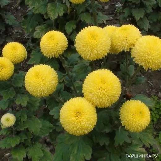 Хризантема Пинг Понг Голден - Относится к группе одноголовых крупноцветковых хризантем. Стебель крепкий, в высоту достигает 75-85 см., листва густая, темно-зеленого цвета. Соцветия до 5-7 см. в диаметре, плотные, помпоно-шаровидные, золотистого цвета, по форме напоминают шарики для пинг-понга, распускаются в октябре, цветение в регионах с теплым климатом может продлиться всю осень. В срезке устойчивость высокая, до трех недель.