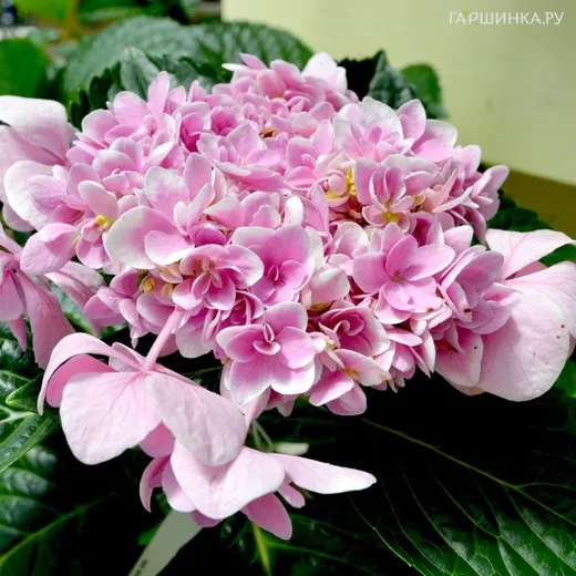 Гортензия крупнолистная Star Gazer - Уникальный ремонтантный повторноцветущий сорт крупнолистной гортензии. Имеет оригинальные зонтичные соцветия с крупными махровыми нежно-розовыми цветками с белым кантом по краям. Интенсивность окраски соцветий связана с кислотностью почвы. Высота куста до 120 см., ширина 70-80 см. Куст компактный. Цветение сорта Star Gazer июль- сентябрь.