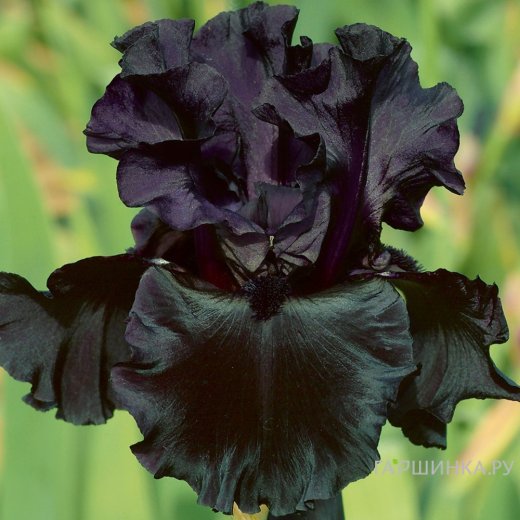 Ирис Блэк из Блэк - Чемпион среди черных ирисов! Почти чёрного цвета лепестки (на самом деле присутствует слабый фиолетовый отлив). Стандарты и водопады одного тона, водопады чуть более темного черного цвета, бархатистые. Бороды так же черные, не нарушающие всего обаяния этого строгого цветка. Прекрасная форма и ветвление, по 9-12 бутонов на стебле.