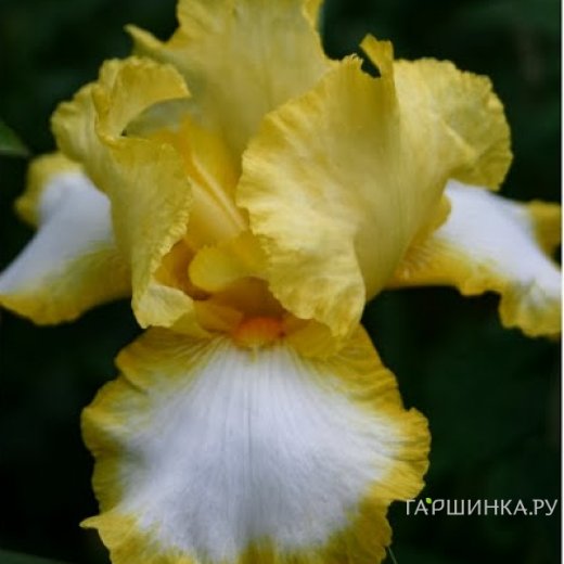 Ирис бородатый Fringe of GoldЦветы крупные, плотные лимонно-желтого оттенка с белым распылением на нижних гофрированных лепестках. Аромат цветка приятный, едва насыщенный.