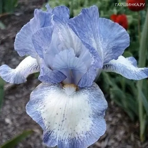 Ирис (касатик) - многолетнее корневищное травянистое растение семейства Ирисовые. Листья по 5-7 штук отходят непосредственно от корневища, они линейные или мечевидные, зеленые или со слегка голубоватым оттенком. На одном цветоносе располагается по 2-7 цветков диаметром до 15 см. Окраска цветков разнообразна. Ирисы могут быть низкорослыми (дл 40 см), среднерослыми (до 70 см) и высокорослыми (более 70 см). Наиболее распространенными в садоводстве являются ирисы бородатые. Наружные лепестки цветка ириса бородатого украшены контрастными полосками (волосками), за эту особенность он и получил свое название.