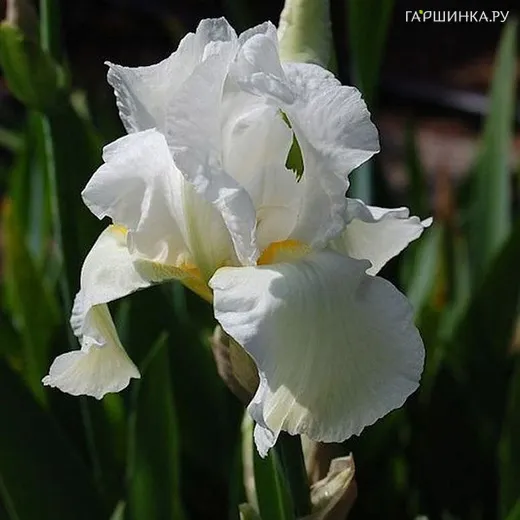 Ирис бородатый Клиффс оф Дувр - ирис бородатый высотой 90-100 см. Цветения май-июнь. Цветок белый с слегка заметным золотистым оттенком в центре. Бородка светло-желтая. Диаметр цветка 15-17 см. Листья мечевидной формы. Рекомендовано защищенное от ветра место для посадки в полу-тенистых или солнечных местах сада. Зона зимостойкости 4.