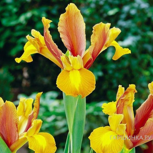 Ирис Бронз Бьюти 10шт - Декоративный сорт ирисов, цветущих с мая по июнь. Стебель прямой, мощный высотой до 40 см. Листья удлинённые, мечевидные. Верхние лепестки узкие бронзового цвета с бордовым отливом. Нижние лепесточки – ярче и светлее, с оранжевым язычком.