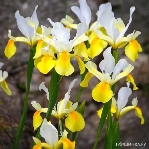 Ирис Dutch Iris White-Yellow. Распускается весной бело-желтыми цветками диаметром до 8 см. Цветение: май-июнь. Эти удивительные голландский ирисы не останутся незамеченными в саду! Высота растения до 60 см.