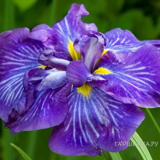 Ирис мечевидный Электрик Рэйс (Iris Electric Rays) Роскошный крупный цветок! Распускается большими цветами с 6-ю гофрированными лепестками насыщенного темно-фиолетового цвета, подчеркнутого неоново-синими лучами и желтыми сигналами. Листья мечевидные, гладкие, блестящие. Высота взрослого растения: 95 см. Цветки: 17 см. Цвет: Синий с белым и желтым. Время цветения: июнь – июль. Зона зимостойкости: 4