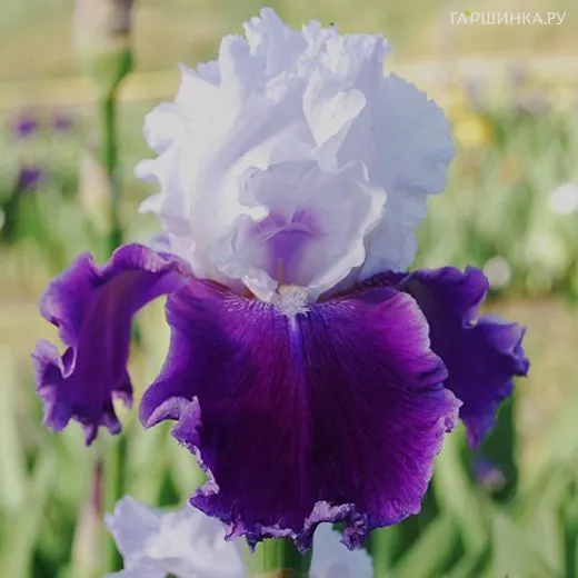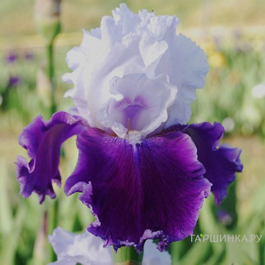 Ирис бородатый Гай Парасол - Цветы с бело-сиреневой окраской цветка - нижние лепестки сиреневые, верхние - белые. Растение высотой 90 см. Невероятно крупные бутоны, до 15 см. Цветение май-июнь.