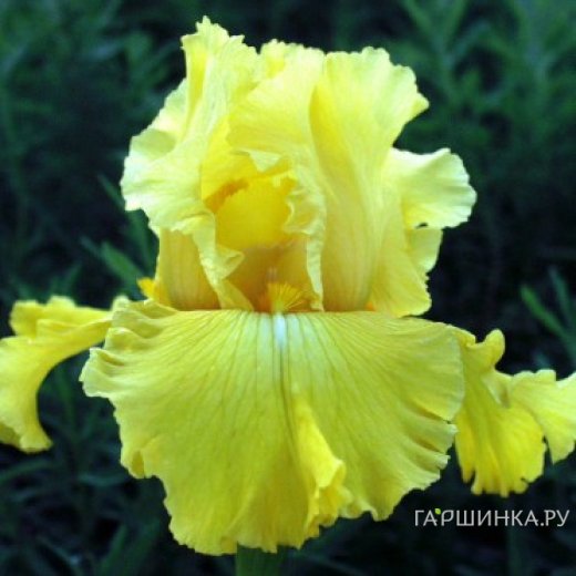 Ирис бородатый Harvest of Memories- Цветок большой, ярко-жёлтый, удивительно ароматный. Насыщенность аромата может варьироваться в зависимости от условий выращивания и климатических особенностей региона. Размер цветка 14-16 см. Высокорослый, высотой до 80см, цветки оригинальной формы, на прочном разветвленном цветоносе. На наружных долях околоцветника бородка из густых волосков. Листья мечевидные, с восковым налетом собраны в вееровидные пучки. Цветение май-июнь.