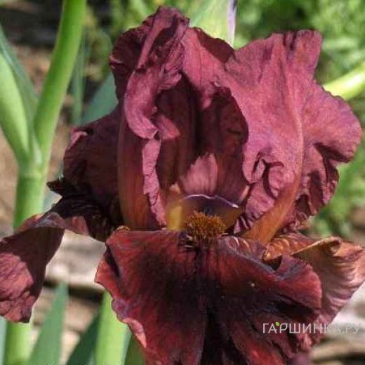 Ирис бородатый Монинг Шоу - Многолетнее растение высотой 50 см, цветок оригинальной формы, на прочном разветвленном цветоносе, темно-пурпурный, бордовый, верхние лепестки немного светлее. На наружных долях околоцветника бородка из густых волосков. Листья мечевидные, с восковым налетом собраны в вееровидные пучки. Цветение июнь-июль.