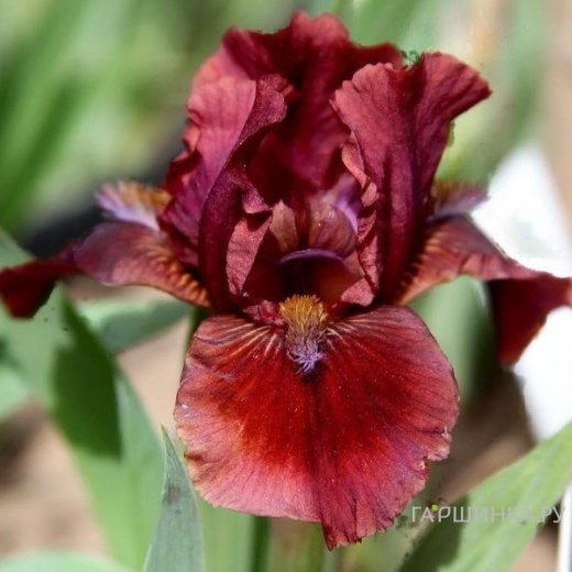 Ирис карликовый Леди ин Ред - ирис карликовый высотой 25-30 см. Цветения май-июнь. Цветок оранжево-красный с вишневыми акцентами. Бородка горчично-оранжевая. Диаметр цветка 8-10 см. Листья мечевидные. Рекомендовано защищенное от ветра место для посадки в полу-тенистых или солнечных местах сада. Умеренный полив. Зона зимостойкости 4.