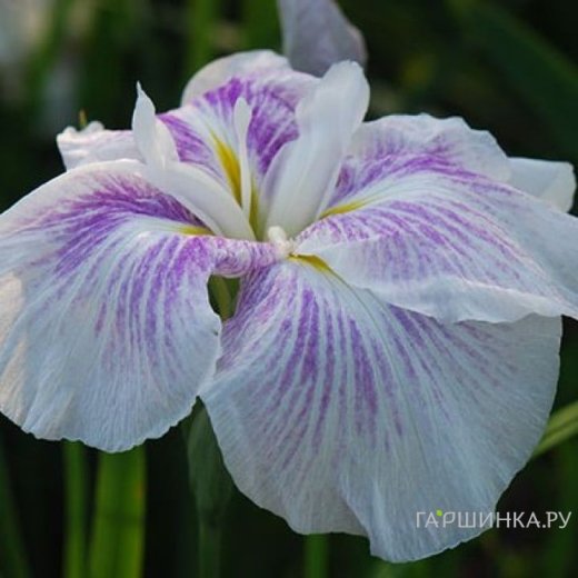 Ирис мечевидный Когешо (Iris ensata Kogesho) - Цветок белый с пурпурным прожилками по центру и жёлтыми мазками.
