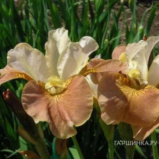 Ирис сибирский Пикок Батерфляй Дринк ю Ти - прекрасный вид ирисов. Цветки маленькие, многочисленные. Верх кремово-бежевый, низ терракотовый. Высота 70-80 см. Цветение в июне. Место солнечное, почва влажная. Аромат легкий, сладкий. Зона 3.