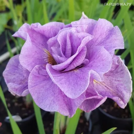 Ирис сибирский Пинк Парфейт - эффектное, радужное ,многолетнее растение с мощным корневищем, в переводе с древнегреческого "радуга". Рост взрослого растения 0,65 м. Лист линейный, заостренный, зеленый, осенью бронзовый. Окраска цветка лавандовая, перламутровое напыление, стандарт лавандовый, на фолах лавандовый оттенок желтые пятна, темные прожилки, сигнал белый, диаметр 16 см, присутствует легкий сладкий аромат, фолы вытянутые, край гофрированный, рифленые. Зона зимостойкости 4.