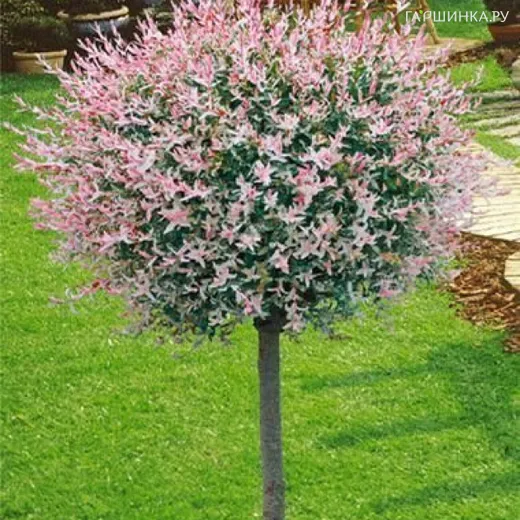 Ива Хакуро Нишики на штамбе 80 см — эффектное мини-дерево с пёстрой кроной, которое мгновенно притягивает взгляд. Розово-бело-зелёная листва на молодых побегах создаёт ощущение цветения весь сезон, а аккуратный штамб подчёркивает форму и делает растение идеальным акцентом для сада, патио или входной группы.