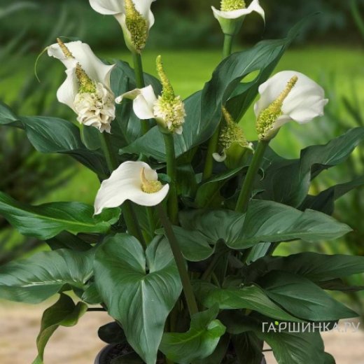 Калла Эфиопика Вайт Сван - многолетнее травянистое растение с клубневидным корневищем. Высота до 90 см. Листья зеленые, крупные, сердцевидные, на длинных черешках. Цветок - это ярко-желтое соцветие-початок, обернутое воронко-видным листом-покрывалом нежно-белого цвета.