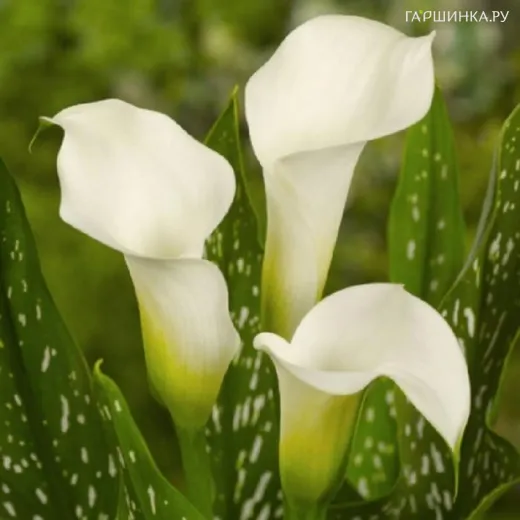 Калла Капитан Вентура - многолетнее травянистое растение с клубневидным корневищем. Высота растения 40-50 см. Соцветие каллы одиночное, белого цвета с восковым отливом, в форме початка, окруженного крупным воронковидным листом. Сочно-зеленые листья с серебристо-белыми вкраплениями имеют стреловидную форму.