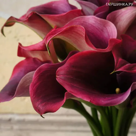 Калла Роял Валентин 3 шт - многолетнее травянистое растение с клубневидным корневищем. Высота цветущего растения до 60 см. Цветки насыщенного и глубокого темно-красного цвета.