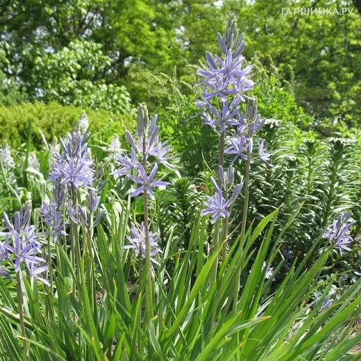 Камассия Лейхтлина Каерулеа 3шт .Семейство: Гиацинтовые Род: Camassia . Растение высотой до 100 см, с тонкими прочными стеблями и узкими листьями линейной формы. Крупные (диаметром около 4 см) цветки образуют соцветие-кисть, имеющее темно-голубую окраску. Цветение начинается в мае-июне и продолжается в течение 20 дней. Как культурное растение выращивается с 1837 года.