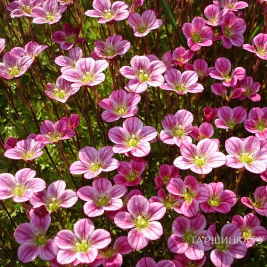 Камнеломка Арендса Розеа - высота 10-20 см, образует густые заросли из мелких розеток. Цветоножки тонкие, на них расположены несколько колокольчатых, восходящих цветков розовой окраски. Цветут в мае-июне. Растение вечнозеленое, очень декоративно. Цветет в мае-июне около 30 дней.