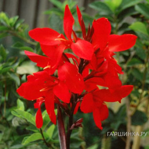 Канна Файерберд - многолетнее корневищное растение семейства Канновые.  Высоту 60-90 см. Цветки ярко красные, диаметром до 12 см. Сроки цветения июль-сентябрь, декоративность – весь сезон.