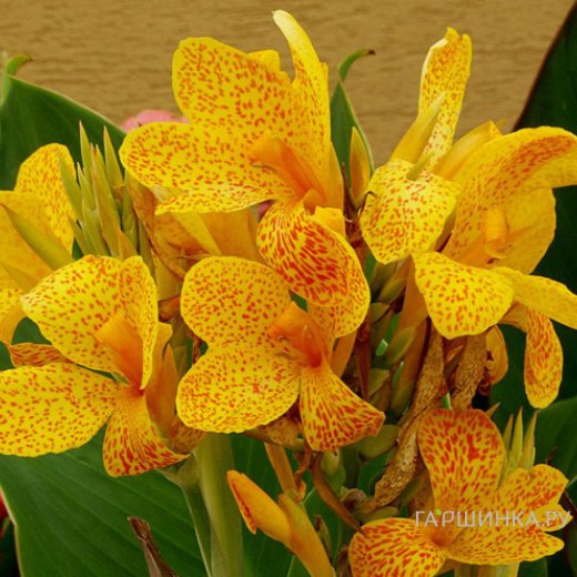 Канна Пикассо - многолетнее корневищное растение семейства Канновые. Высота 75-90 см. Имеет крупные декоративные листья, темно - и светло-зеленые. Соцветие-кисть состоит из крупных ярко-красных цветков диаметром до 12 см. Цветет с середины лета до заморозков. Декоративна весь сезон.