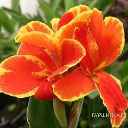 Канна Реземонд Койлз - многолетнее корневищное растение семейства Канновые. Высота 100-130 см. Цветки яркой, пестрой окраски, созданной путем причудливого комбинирования красных и апельсиновых оттенков, диаметром до 10 см. Сроки цветения с середины лета до заморозков, декоративность – весь сезон.
