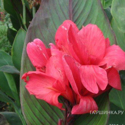 Канна Ватермелон - многолетнее корневищное растение семейства Канновые. Высота 50-60 см. Цветки малиново-розового цвета без вкраплений, диаметром до 12 см. Сроки цветения с середины лета до заморозков, декоративность – весь сезон.