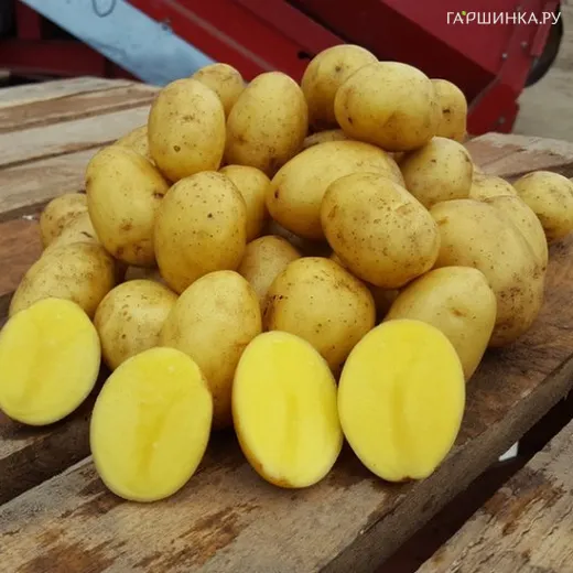 Картофель Гала 2кг - сорт имеет столовое назначение, среднеранний. Куст среднерослый, полупрямостоячий, цветы белые. Клубни овальноокруглые, кожура желтая, гладкая, с мелкими глазками, мякоть темно- желтая. Масса плода 70-120 гр, содержит крахмала 10-13%. Сорт устойчив к фитофторозу, нематоде, раку, парше.