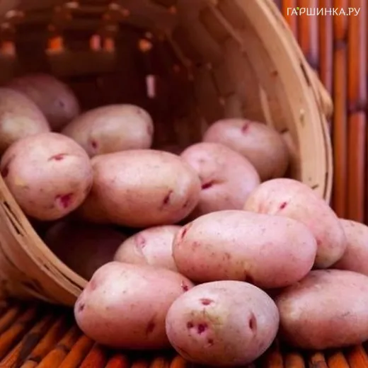 Картофель Хозяюшка 2кг - имеет столовое назначение, сорт раннеспелый. Куст полупрямостоячий, среднераскидистый, высокорослый, окраска цветка белая. Клубень округло-овально-удлиненная, тупая верхушка, кожура светло-розовая, очень гладкая, неровностей почти нет, глазки мелкого размера, розовые, мякоть вкусная, бежевая. Масса клубня 100-200 гр, содержит крахмал 17-22%, при обработке не темнеет, высокая лежкость и транспортабельность. Отличается высоким содержанием каротина и белков, используется в диетическом питании, подходит для изготовления чипсов, фри. Сорт устойчив к парше, нематоде, раку и фитофторозу. Отдача продукции дружная, ранняя, высокоурожайная.