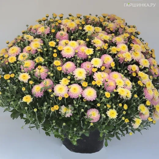 Хризантема мультифлора Брансвит – прямостоячие побеги. Цветение начинается с августа-сентября. Махровые цветки с розово-желтым окрасом. Диаметром 3-4 см. Место для выращивания подойдёт открытый грунт, а также балкон(терраса).Зона морозостойкости 7 (до -18С).