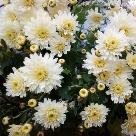 Хризантема мультифлора Коко Шанель - многолетнее травянистое растение семейства Астровые. Куст высотой 40-50 см от природы имеет форму шара. Стебли крепкие, сильноветвистые, густооблиственные. У хризантемы Коко Шанель листочки темно-зеленые, с изрезанными округлыми краями. Этот сорт имеет махровые цветки белого цвета 4-7 см в диаметре. Цветение длительное - до двух месяцев подряд, с сентября по октябрь.
