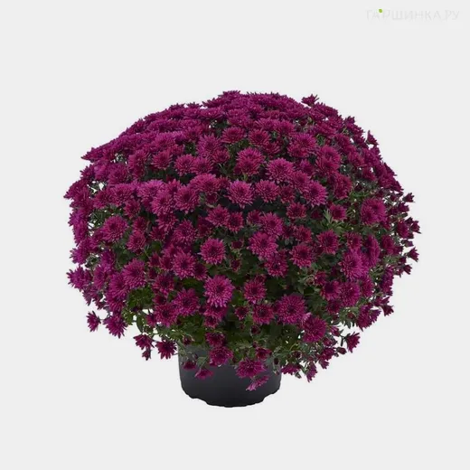 Хризантема мультифлора Лагун Пурпл – прямостоячие побеги, высотой взрослого растения 40см. Цветение начинается с августа-сентября, однократное. Махровые цветки с бордовым окрасом. Диаметром 6 см. Место для выращивания подойдёт открытый грунт, а также балкон (терраса) . Зона морозостойкости 7 (до -18С).