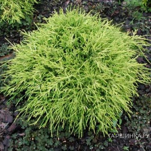Кипарисовик Санголд горохоплодный - низкорослое, медленнорастущее, вечнозеленое, хвойное растение. Природный карлик, не требует стрижки и обрезки. Растение во взрослом состоянии , при благоприятных условиях выращивания, вырастет до 0,5 м. Окраска хвои золотисто-желтая, яркая, концы ветвей нитевидные, свисают подобно фонтану. Шаровидная крона самоформируется, ветви жесткие, короткие.